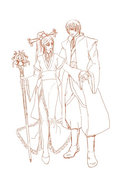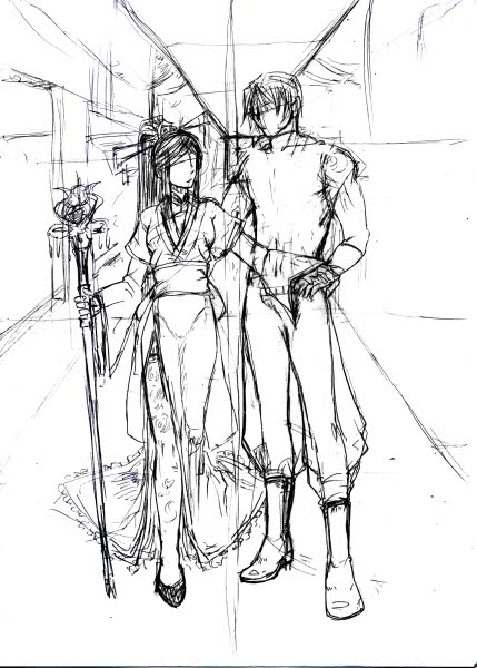昨日下絵を取り込みまして、人物の線画まで終わりました↓